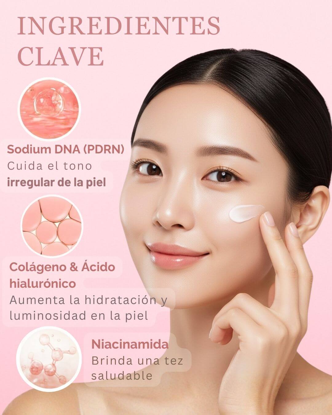 - ☄️PDRN (ADN de salmón): Estimula la Regeneración Celular mejorando la Textura de la Piel.