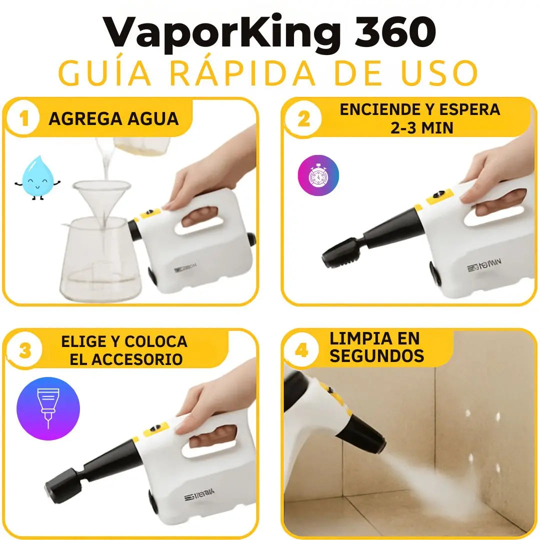 VaporKing 360: Limpieza total, Rápida y sin químicos.